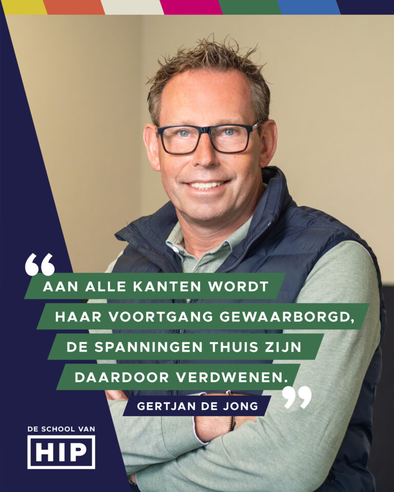 Het geeft een gevoel van betrokkenheid bij de ontwikkeling van je kind. Op de basisschool is die betrokkenheid nog vanzelfsprekend, maar zodra kinderen in de puberleeftijd komen, verdwijnt dat vaak in het reguliere onderwijs. Je ziet cijfers, maar verder niet veel. Hier beweeg je als ouder mee met je kind, zonder dat je er bovenop hoeft te zitten. Dat vind ik heel waardevol: betrokkenheid zonder bemoeizucht. Dat typeert HIP voor mij.