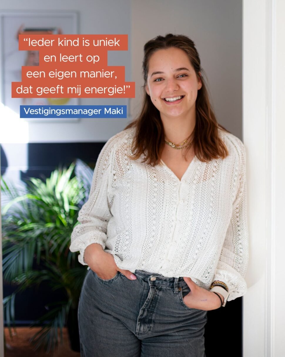 “Als vestigingsmanager sta ik niet alleen aan het roer, samen met een team begeleiden wij met veel plezier de leerlingen, zodat wij precies weten wat ze nodig hebben. Ouders geven hun vertrouwen aan ons, en wij zorgen ervoor dat hun kind gezien en gehoord wordt. Daarom creëren we samen een warme en gestructureerde omgeving. Dat maakt écht het verschil.”